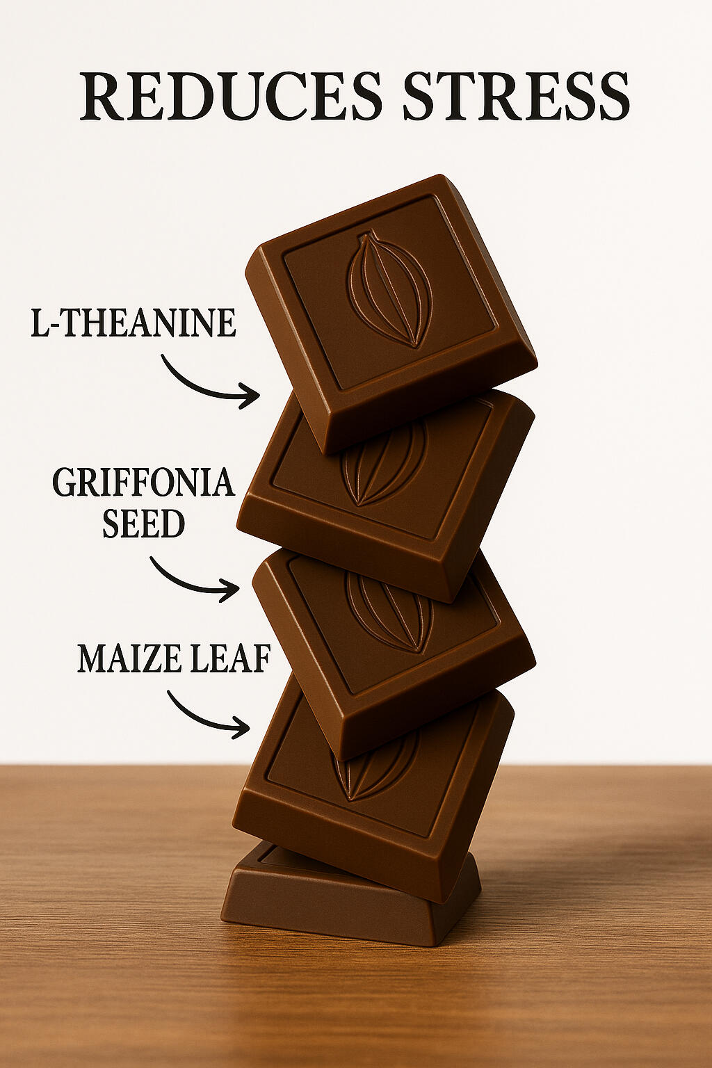 Chronic stress floods your body with cortisol, blocking key neurotransmitters like serotonin (mood), dopamine (motivation), and GABA (relaxation). Stress Chocolate helps regulate cortisol, not just mask it. Our proprietary Phytotonin™ blend restores harmony between your gut, heart, and brain for total-body calm.